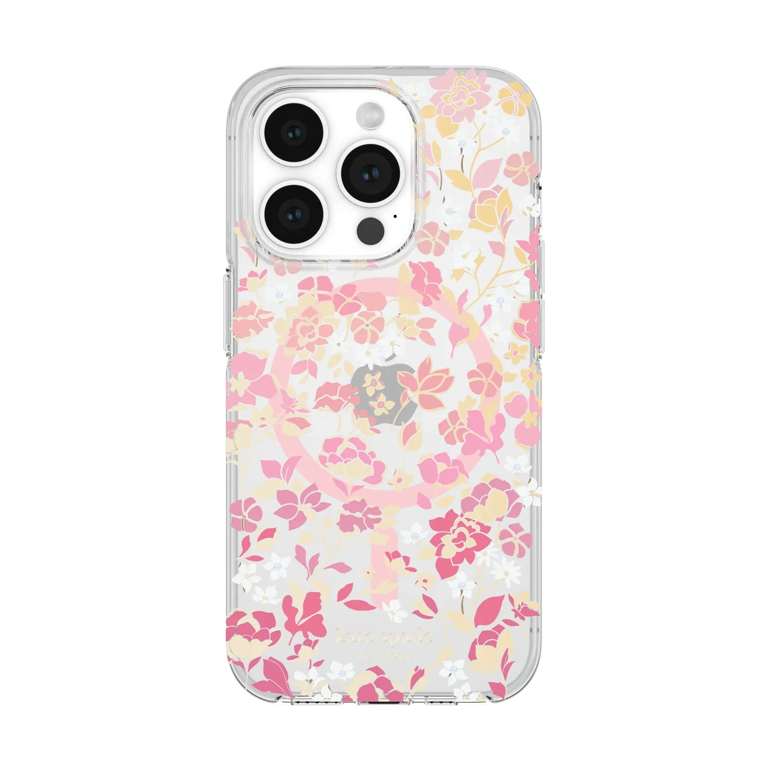 Kate Spade New York iPhone 15 Pro Protective Hardshell Case with MagSafe,Flowerbed Pink Ombre/W