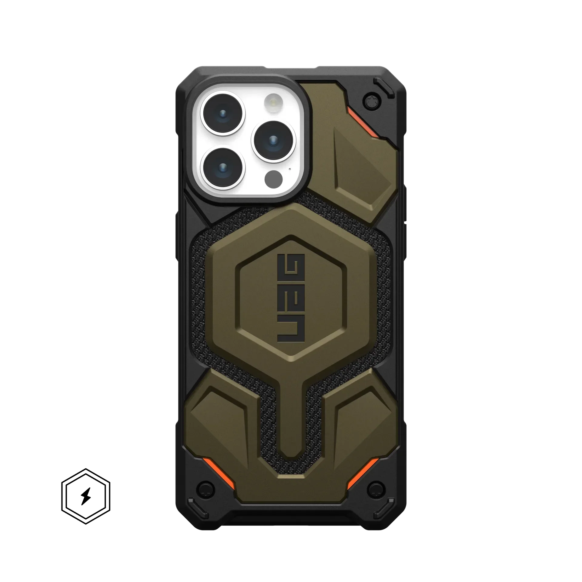 The Monarch Pro Kevlar - the ultimate all-terrain, rugged protective case now featuring a powerful built-in MagSafe module. Engineered with premium materials for unrivaled protection. Monarch Pro boasts an impressive 5-layer construction, including a shock-resistant core, a distinctive signature armor frame layered with DuPont™ KEVLAR® Material, a polycarbonate shear plate, and an impact-resistant rubber surround. With seamless MagSafe charging compatibility, this case offers both advanced protection and effortless functionality. The Monarch Pro is built to go further, ensuring your essential tech device stays safe and secure no matter where life takes you.