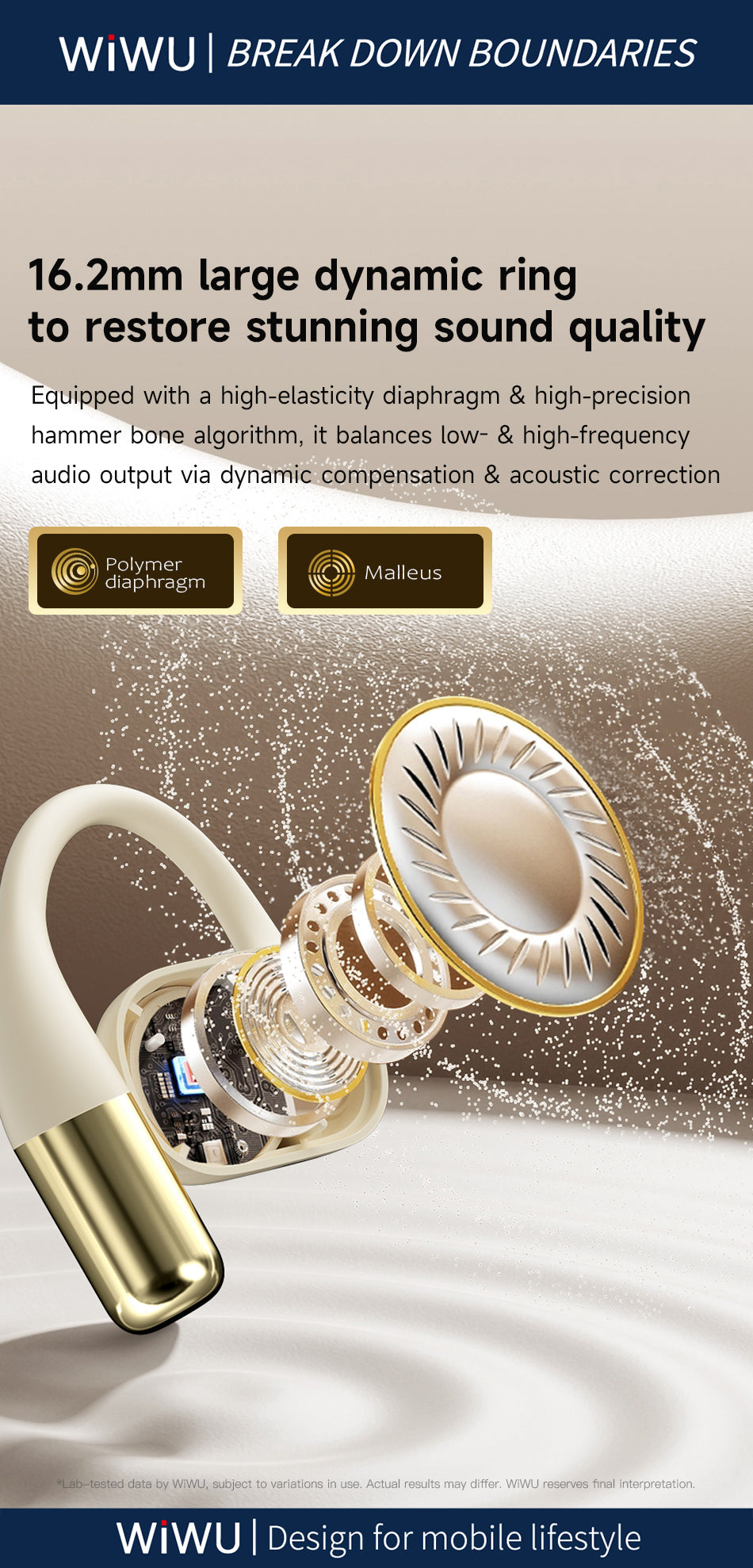 The WiWU O500 Open Wearable Stereo is a cutting-edge audio device designed for those who seek a blend of comfort, style, and superior sound quality. With its innovative open-ear design, the O500 allows users to enjoy their favorite music while remaining aware of their surroundings, making it an ideal choice for outdoor activities, commuting, or simply relaxing at home.